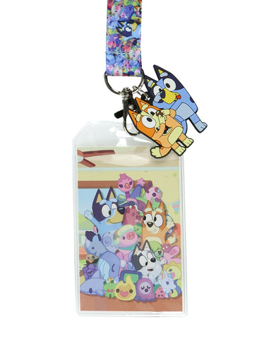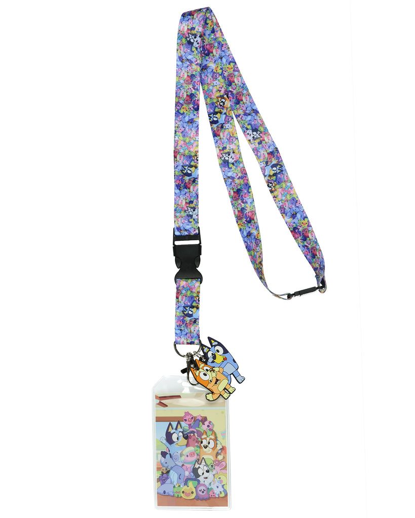 Bring a little fun to your everyday routine with this Bluey lanyard. The strap is covered in a bright, playful design of Bluey and all of his plush toys, and it’s built with both comfort and safety in mind. A breakaway clasp at the neck and a handy buckle release make it easy to wear and use. The clear sleeve lets you keep your ID or badge visible, and it comes with a matching Bluey insert that ties the whole look together. To top it off, a soft rubber charm of Bluey and Chilli hangs from the strap, giving fans an extra detail to love. Lightweight and practical, this lanyard is a simple way to keep keys, badges, or small items close by while adding a cheerful touch of Bluey wherever you go.