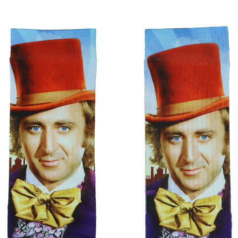 These men's crew socks showcase Willy Wonka surrounded by candy canes, mushrooms, lollipops, and a whimsical candy landscape. The sublimated design covers the sock in vivid detail, with "Willy Wonka and the Chocolate Factory" text displayed beneath the character. Built with a polyester, cotton, and spandex blend, they deliver breathable stretch and durability with every wear. Willy Wonka and the Chocolate Factory is celebrated for its colorful world of sweets, unforgettable characters, and imaginative storytelling. These socks capture that creativity in a functional piece of apparel that blends visual detail with everyday comfort.