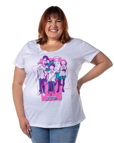Introducing the ultimate My Hero Academia women's plus size t-shirt featuring the characters Izuku Midoriya, Katsuki Bakugo, Shoto Todoroki, Ochako Uraraka, and Tsuyu Asui. Great for fans of the anime and manga series, this t-shirt showcases the dynamic and powerful heroes in a vibrant and eye-catching design. Made with 100% cotton, this t-shirt offers a comfortable and soft feel, great for all-day wear. The cotton fabric is breathable and lightweight, making it an ideal choice for those warm summer days. With its classic cut and round neckline, this t-shirt is both stylish and practical, making it the great addition to your wardrobe