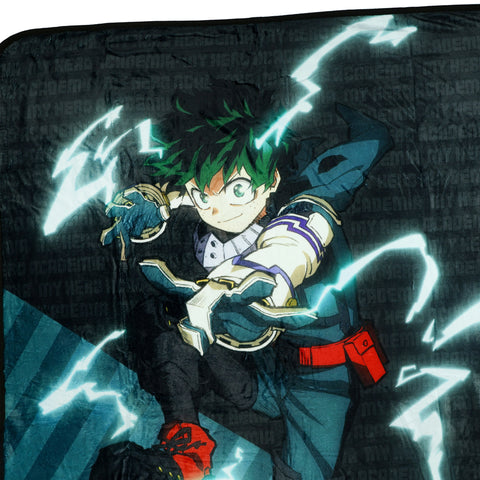 Bring the action of My Hero Academia into your home with this Izuku Midoriya throw. Featuring a complete all-over design. This blanket combines fan-favorite visuals with practical functionality. Its lightweight construction offers warmth and comfort for lounging, traveling, or layering on a bed. Made from soft, durable 100% polyester, this throw features a silk-like touch and resists wear from everyday use. Easy to clean with machine or hand washing on a gentle cycle, it provides long-lasting comfort and convenience while adding a stylish touch to any room.