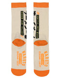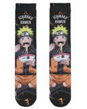 This 2-pack of Naruto-themed mid-calf crew socks is a must-have for fans of the beloved anime series. The beloved Ichiraku Ramen Shop, a favorite hangout of Naruto Uzumaki, inspires each pair. One pair showcases a bold design featuring a steaming bowl of ramen, paying homage to the delicious dish that plays a central role in Naruto's adventures. The second pair, a sublimated sock, highlights a vibrant, detailed image of Naruto enjoying a hearty ramen bowl, capturing his energetic and carefree spirit. Made to fit men's shoe sizes 8-12 and sock sizes 10-13 best, these socks offer both comfort and style. Great for casual wear, anime conventions, or just showing off your Naruto fandom.