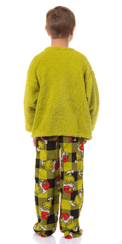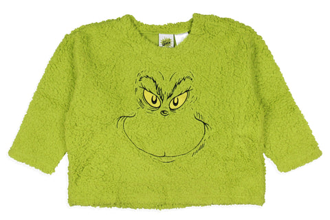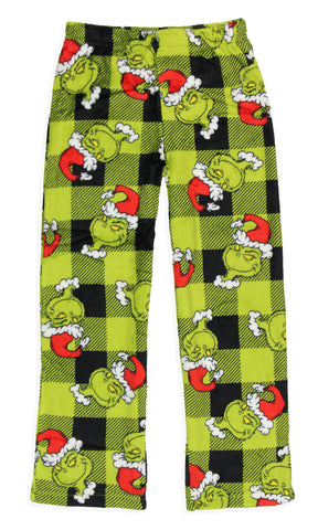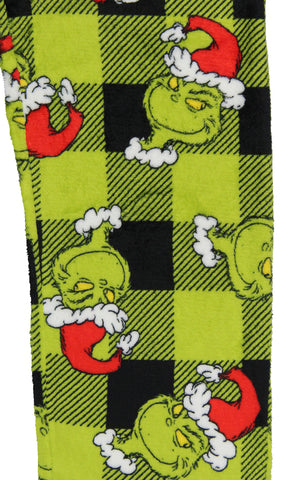 Get ready to steal the show this holiday season with this pajama set. Whether you are a fan of Dr. Seuss' classic character or looking for cozy and festive PJs, this choice is great. This plush fleece set features a green top with an embroidered Grinch face on the front and black and green Santa plaid bottoms. Made with great materials, this sleep set is designed for both comfort and durability. The soft fabric feels gentle against your skin, while the meticulous stitching ensures that your Grinch sleep set will last through many festive seasons. Whether you're lounging around the house, watching holiday movies, or waking up on Christmas morning, our Grinch Sleep Set will keep you in the holiday spirit while keeping you warm and comfortable. It's the great addition to your seasonal wardrobe or a fantastic gift for any Grinch enthusiast.