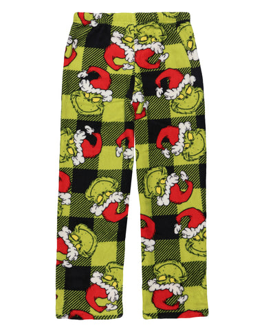 Bring a bit of Whoville fun into your home with these The Grinch kids' pajama pants. Designed in a green and black buffalo plaid pattern, they feature The Grinch himself in a Santa hat printed all over, adding playful character to every pair. The pants include a 1-inch elastic waistband for a comfortable, secure fit and are made entirely of soft, lightweight polyester that feels gentle on the skin. The Grinch is one of Dr. Seuss's most beloved creations — a mischievous yet memorable character known for his witty personality and heartwarming story. These pajama bottoms capture that charm while providing practical comfort for lounging or sleeping.
