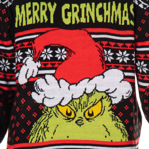 This kids' Grinch pullover brings all the cheerful charm of a traditional knit with a design that feels instantly playful. The moment you see The Grinch smiling front and center in his Santa hat, surrounded by the Fair Isle pattern, you know this is the kind of sweater that kids get excited to wear. The lime green, red, white, and black colors make it lively without being overwhelming, and the acrylic knit keeps it soft, warm, and easy to move in.