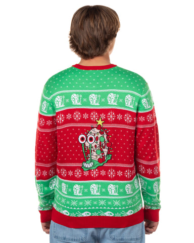 Get ready to rock the coziest, most playful sweater around! This SpongeBob SquarePants pullover puts everyone’s favorite sponge front and center, decked out with antlers. Gary makes a mischievous appearance on the back, tangled in twinkling holiday lights with a star perched on his head. Snowflakes, fun fair isle patterns, and tiny Garys scattered throughout make this knit a cheerful showstopper. It’s soft, comfy, and ideal for layering or lounging.