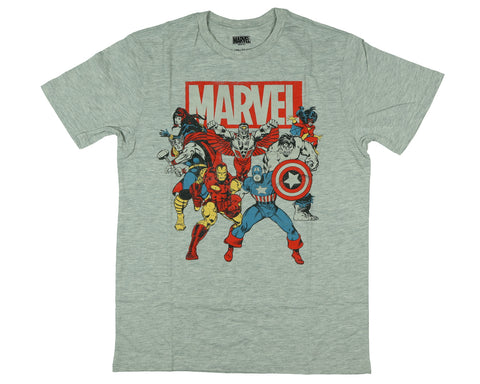 This boy's Marvel t-shirt combines comfort with bold superhero style. The artwork features Falcon, Captain America, Iron Man, Hulk, Black Widow, Spider-Woman, and Thor surrounding the Marvel logo, highlighting some of the most recognizable characters from the franchise. The heather grey fabric, made from a 60% cotton and 40% polyester blend, is soft, durable, and comfortable for everyday wear. A printed tag adds comfort by eliminating itchy seams at the neckline. Marvel continues to bring together a wide cast of heroes whose teamwork and strength inspire generations of fans. This boy's graphic tee captures that energy with dynamic artwork of multiple heroes ready for action.