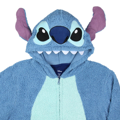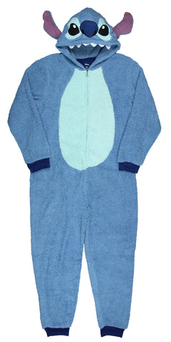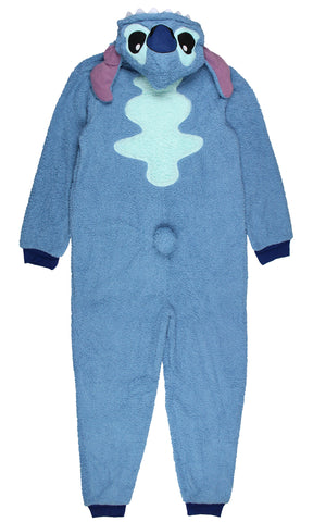 The Disney Lilo and Stitch adult Stitch Costume Onesie Union Suit Pajama is a cozy and comfortable onesie pajama designed to make you feel like Stitch, the lovable alien character from the Disney movie "Lilo and Stitch." One of the standout features of this onesie pajama is the 3D ears and hood with an embroidered face that replicates Stitch's look. It even has a "fur patch" design and a tail on the back. Makes a great costume for cosplay, Halloween, or other occasions. It is made of a fuzzy fleece material that is durable and machine-washable, ensuring that you can enjoy wearing this onesie pajama for a long time. This union suit tends to be long in the legs so as to give it a baggy feel. Made of 100% polyester.