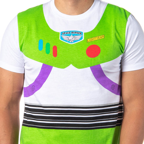 Toy Story is perhaps the most popular Disney Pixar animated series ever! With 3 installments already out and Toy Story 4 coming soon! This Buzz Lightyear Costume shirt features a full front character design, is a short sleeve crewneck tee, and is made of super soft 600% cotton / 40% polyester fabric blend. Perfect gift for fans of Disney or to wear to Disneyland or Disneyworld. With toys, party supplies, hats, costumes, blasters, socks and more, there is nothing you can't get show your love of Toy Story and Buzzlightyear!!
