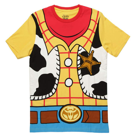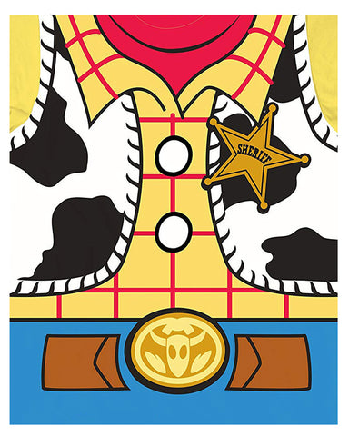 Toy Story is perhaps the most popular Disney Pixar animated series ever! With 3 installments already out and Toy Story 4 Here! This Woody Costume shirt features a full front character design, is a short sleeve crewneck tee, and is made of super soft 60% cotton / 40% polyester fabric blend. Perfect gift for fans of Disney or to wear to Disneyland or Disneyworld. With toys, party supplies, hats, costumes, blasters, socks and more, there is nothing you can't get to show your love of Toy Story and Woody The Cowboy!!