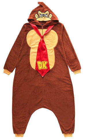 Donkey Kong is one of the all-time great arcade games the was brought into the household early in the classic NES era. This Donkey Kong adult Kigurumi union suit features a front zipper closure with an extremely baggy style to give it that Kigurumi costume look! The hood has a super great embroidered character face design. It has a large hanging red satin tie attached at the neck with a yellow DK logo just like in the newer games! The whole Donkey Kong pajama costume outfit is made of an ultra-soft micro-fleece fabric that is 100% polyester and is flame-resistant. This Adult costume pajama is listed in Unisex adult sizing but will also fit juniors or teens if they want a looser fit.