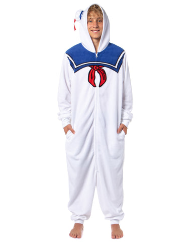 Embrace your love for classic pop funure with this Stay Puft Marshmallow Man Fleece Costume Union Suit! Inspired by the character, it features an embroidered applique of his angry face on the hood, complete with his white sailor cap, red ribbon, and blue hatband. A graphic of his blue sailor's collar accents the neck and shoulders. The double front zipper from neck to crotch makes it easy to wear and remove, while the ribbed cuffs provide a snug fit. Made of soft polyester with a touch of spandex, it’s great for lounging or as a casual costume. Great gift for any Stay Puft fan!