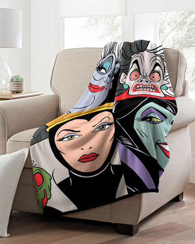 Bring Disney’s most notorious villains into your home with this plush and stylish throw. Featuring The Evil Queen, Ursula, Cruella, and Maleficent, the full-coverage design adds a bold statement to any room while remaining soft and comfortable. The 46" x 60" size ensures plenty of coverage, whether draped over furniture or used for cozying up on the go. Crafted from 100% polyester with a silk-touch finish, this lightweight throw is warm, soft, and built to last. Its durable fabric is easy to clean—simply machine wash on a gentle cycle and tumble dry on low—making it a practical and long-lasting addition to your home collection.