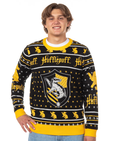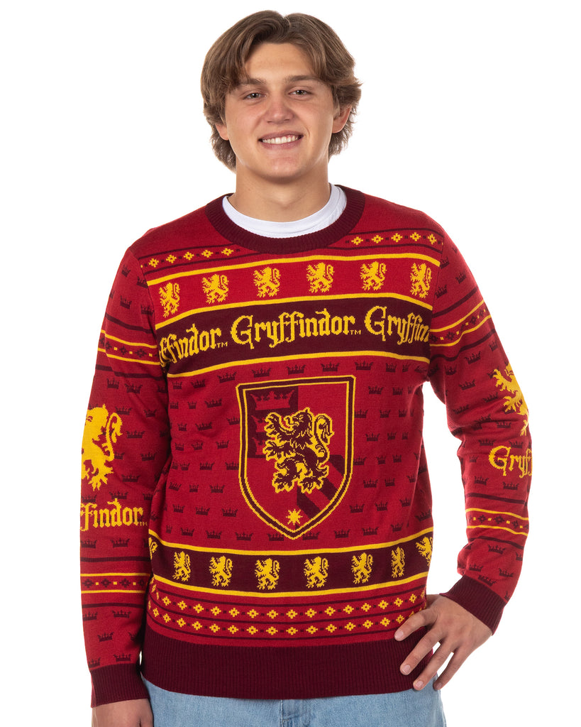 This Harry Potter men’s Hogwarts House Crest Sweater combines expressive knit design with everyday practicality. Each pullover features a detailed house crest and mascot pattern that captures the spirit of Hogwarts houses, from Gryffindor’s lion to Ravenclaw’s eagle. The ribbed cuffs, collar, and hem provide a comfortable, flexible fit that maintains its shape wear after wear. Made of 100% acrylic, this crewneck knit pullover offers warmth without the bulk, making it ideal for layering. The fabric is easy to care for—simply turn inside out, machine wash on a gentle cycle, and lay flat to dry. Crafted with attention to detail and durability, this sweater adds comfort, quality, and character to any wardrobe.