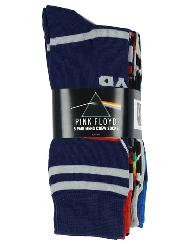 This five-pack of Pink Floyd men's crew socks features a variety of designs inspired by one of the most influential rock bands in history. Each pair highlights a unique style, from rainbow prisms and text prints to camo and striped patterns. These socks are made from a soft polyester-spandex blend and combine comfort, stretch, and durability for daily wear. Reinforced toes and heels add extra strength, making them a reliable addition to your sock drawer.