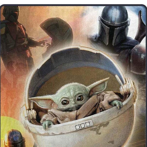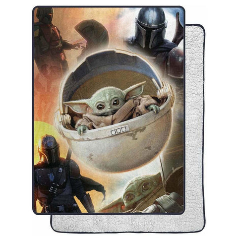 Wrap yourself in the world of The Mandalorian with this generously sized 60" x 80" reversible throw. The front features a bold, colorful design of Grogu in his pod alongside scenes of the Mandalorian, while the reverse side is lined with ultra-warm faux sheep's wool. Whether you're watching your favorite Star Wars series or winding down for the night, this blanket offers a balance of visual fun and cozy warmth.