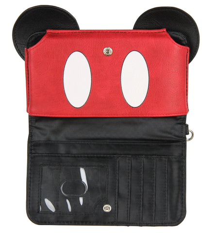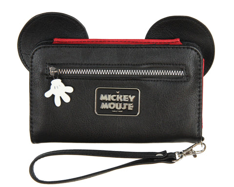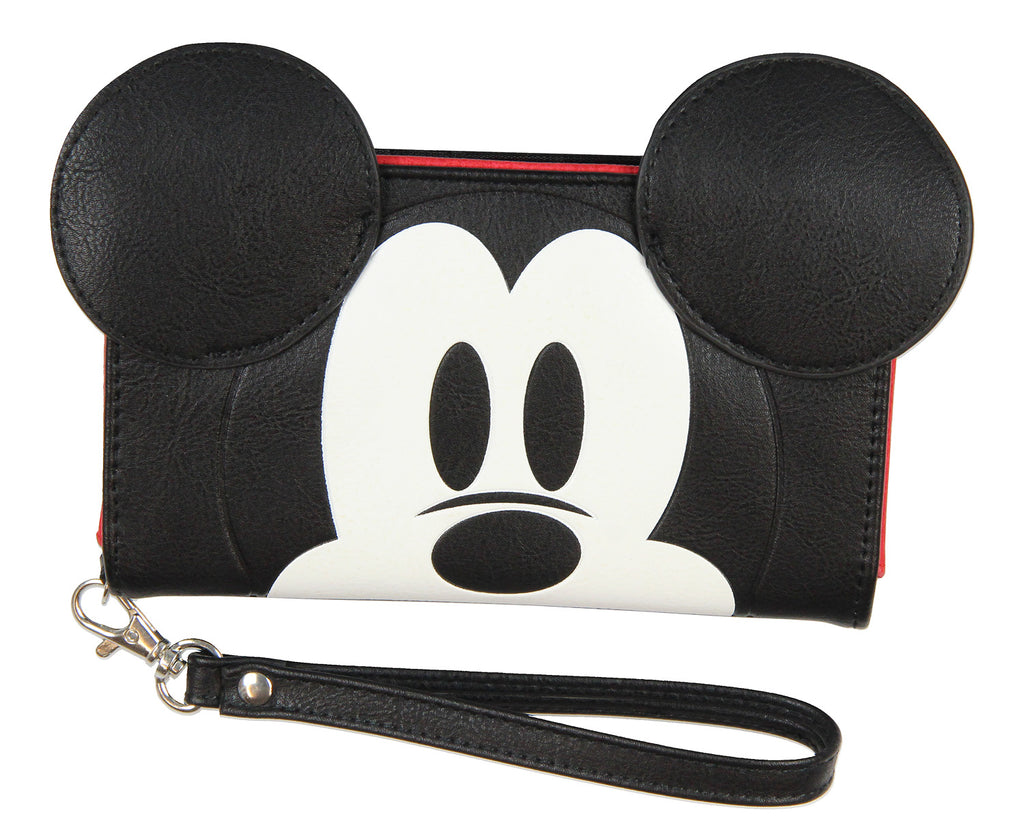 This is Disney Mickey Mouse wristlet wallet, guaranteed! Fun Mickey Mouse design with 3D ears. Comes with a detachable wristlet strap so you can just throw it in your purse or bag and go. It is a snap closure and has 4 card slots so you can carry your important cards and 1 clear window ID slot, 2 bill slots are located behind the card slots and a zippered coin slot can be found on the back of the wallet with a fun Mickey Mouse glove as the zipper pull. Let us not forget the handy cell phone pocket that is decorated as Mickey's shorts. This is great for traveling, vacations or visiting your favorite theme park in the work Disneyland / Disneyworld!