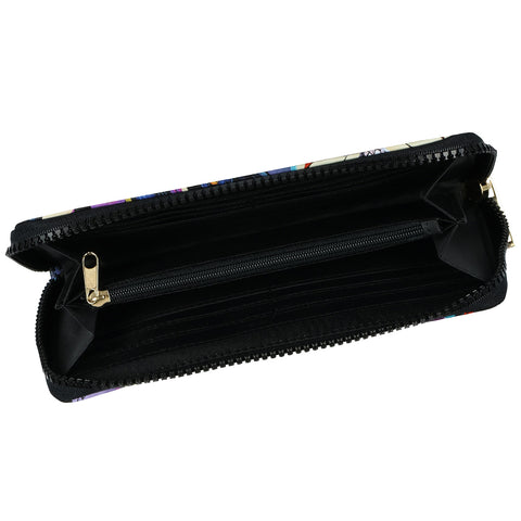 Inside, there’s plenty of space to keep your essentials organized. You’ll find 12 card slots, two long compartments for bills or receipts, and a center zip pocket for coins or small items. The faux leather feels durable and smooth, and it’s easy to wipe clean when you're on the go. Whether you toss it in your bag or carry it on its own, this wallet performs well and stands out doing it.