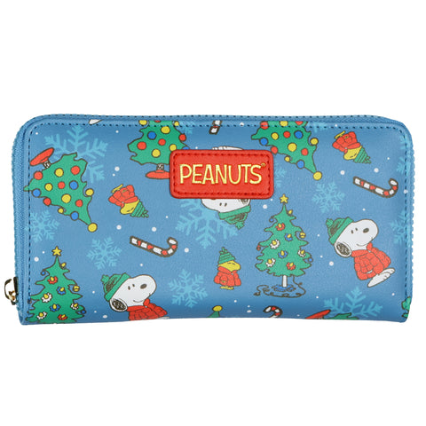 Peanuts Zip Around Wallet Snoopy and Woodstock Holiday Faux Leather Clutch