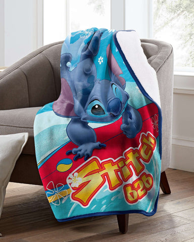 Snuggle up with this fun Disney Stitch throw! One side features Stitch riding the waves on a surfboard with “Stitch 626” text, while the other side is covered in ultra-soft faux sheep’s wool that feels warm and cozy. It’s lightweight and the perfect size for curling up on the couch, layering on your bed, or taking with you when you travel. Made from 100% soft polyester, this blanket is durable and maintains its smooth, vibrant look even after multiple washes. Measuring 46" x 60", it’s spacious enough to keep you comfortable without being bulky. Easy to care for and highly versatile, it’s a simple way to add a touch of Disney fun to your everyday comfort.
