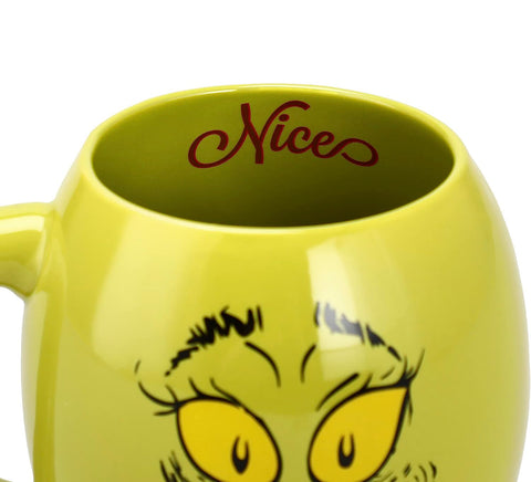 This Grinch-tastic combo is the perfect way to start your day! The 18oz oval ceramic mug is microwave and dishwasher-safe and features a fun design with two faces of GRINCH, one with a devious smile and one with a genuine smile. The words "naughty" and "nice" appear in red letters on the inside of the mug. The crew socks feature GRINCH face and the text "How GRINCH Stole Christmas." These socks are made from soft, comfortable materials and are perfect for wearing around the house or out on the town.