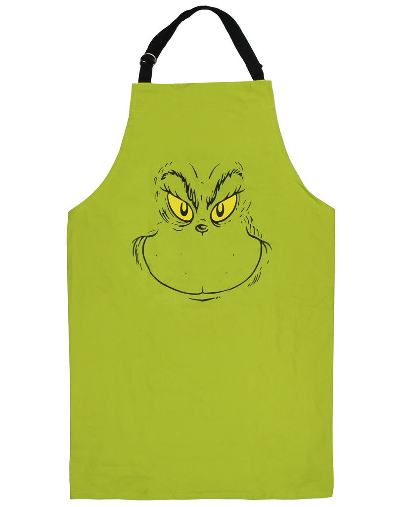 Bring playful style to your kitchen with this Dr. Seuss Grinch apron. Made from durable 100% cotton, it provides a breathable, comfortable fit while protecting your clothes from spills and splatters. The bold Grinch face design makes this apron stand out while adding a touch of personality to your cooking attire.
