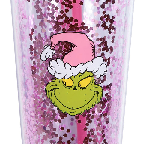 Enjoy your favorite cold beverages in playful Dr. Seuss style with this Grinch Glitter Travel Tumbler. Designed with a clear double-wall acrylic body filled with sparkling glitter, it brings fun to your daily routine while keeping your drinks cool and contained. The 22 oz capacity is ideal for iced coffee, juice, soda, or water, making it a great companion for busy days or relaxing moments.