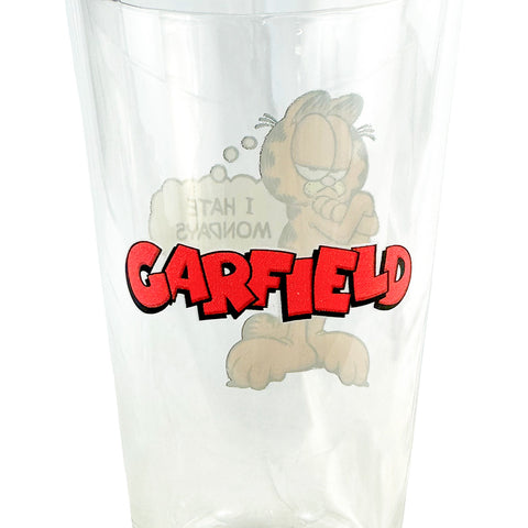 This 16-oz pint drinking glass captures Garfield's humor with a two-sided design. One side features his famous expression and folded arms alongside the phrase "I Hate Mondays," while the other side shows his name in bold red block lettering. The sturdy glass construction offers a dependable feel while keeping the playful design front and center. Garfield has entertained readers and audiences worldwide with his laid-back attitude and witty humor. This pint cup ties into that tradition, allowing fans to enjoy a favorite beverage while displaying a classic franchise piece.