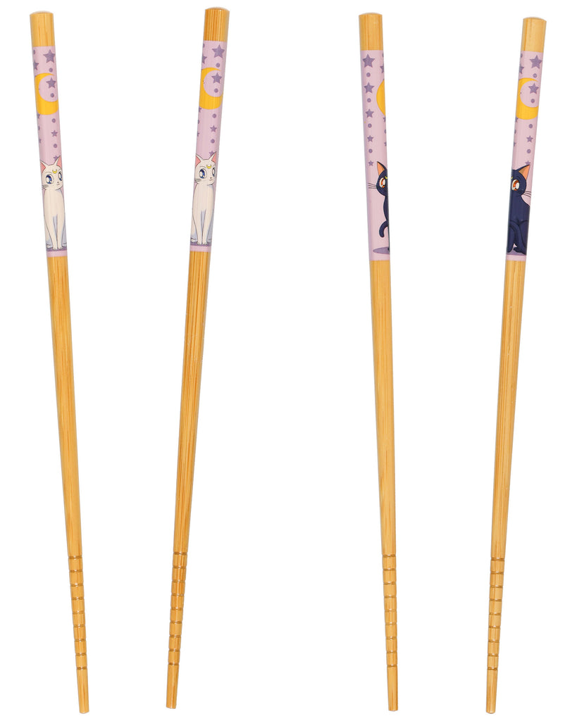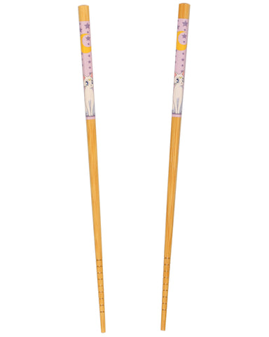Add a touch of Sailor Moon magic to your dining with this Luna and Artemis reusable bamboo chopstick set. Each pair showcases the series’ beloved guardian cats in detailed artwork that complements the smooth, natural bamboo finish. The 8.85-inch length offers a balanced and comfortable grip, perfect for enjoying your favorite dishes — from ramen and sushi to stir-fry and rice bowls.