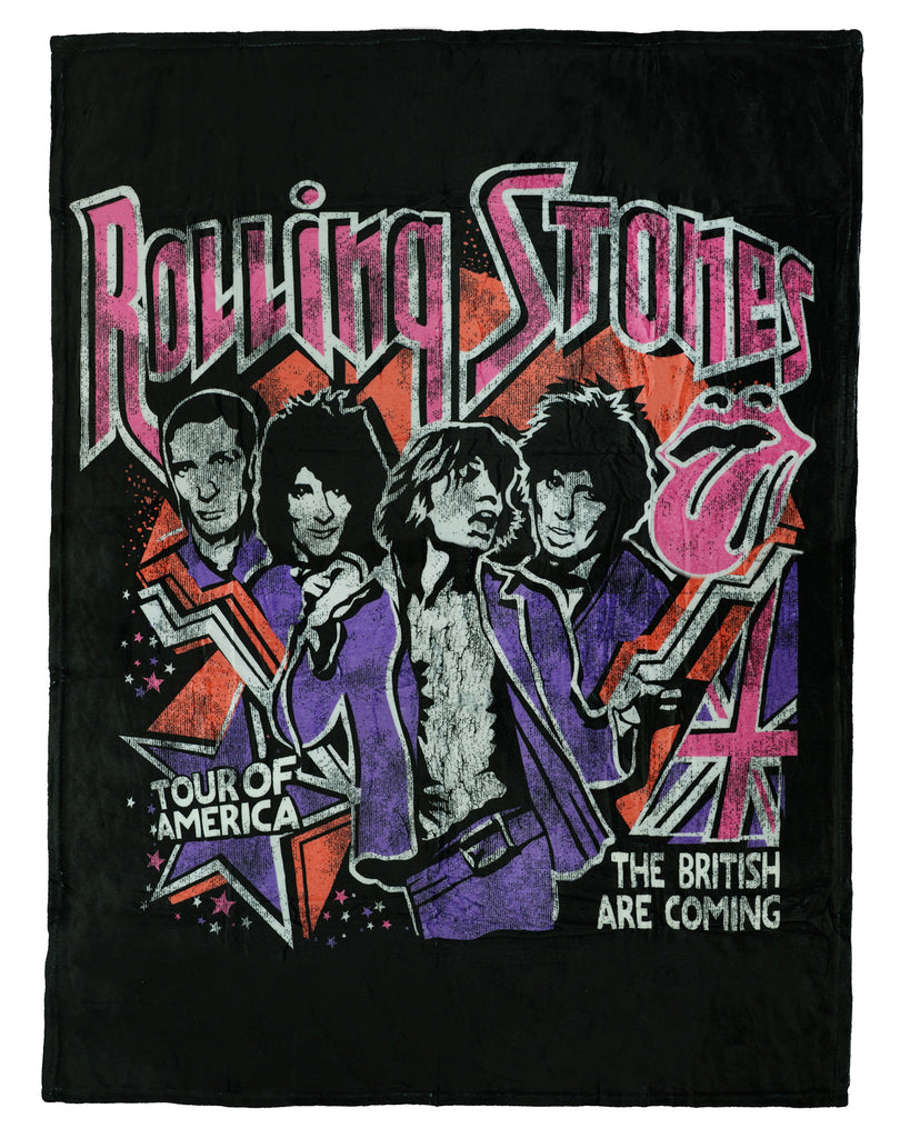 Wrap yourself in comfort with this Rolling Stones throw, featuring a lively band design with the iconic tongue logo and British flag accents. Crafted from soft, silk-touch polyester, it provides a cozy, warm layer excellent for lounging or adding a decorative touch to any room.
