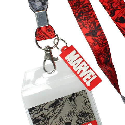 If you�re looking for nice Marvel Comics merchandise, or Marvel Id lanyards in specific, you�ve come to the right place! These lanyards are a cut above the rest when it comes to looks, durability and overall high quality design. This GREAT Marvel lanyard features graphic 2 sided comic strip design, with excerpts from all your favorite Marvel Comic books and heros like the Avengers, Hulk, Loki, Thor, Captain America, Spider-Man, Iron Man and more! It has a classic lobster clasp to hold your badges, ID's or even to hook to you keychain as a key lanyard.