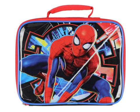 The Spider-Man Lunch Bag is an exciting and practical accessory for young fans of the superhero. This vibrant lunch tote features a detailed front design of Spider-Man in his famous red and blue costume, capturing him in a dynamic web-slinging pose. The front design has a shiny vinyl finish, giving it a sleek and eye-catching appearance that stands out. The full zip-around closure ensures easy access, while the great insulated interior keeps food, drinks, and snacks fresh and ready. With its padded top handle, this lunch box is easy to carry, making it the great companion for school, picnics, or any pit stop.