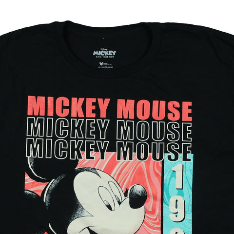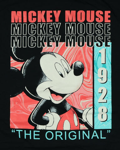 This Mickey Mouse t-shirt has a bold, colorful design featuring a repeating “Mickey Mouse” pattern and the text “The Original 1928” on a black background. It’s made from soft 100% cotton, making it comfortable whether you’re out and about or just relaxing at home. The short sleeves and classic cut make it easy to pair with jeans, joggers, shorts, or even pajama pants.