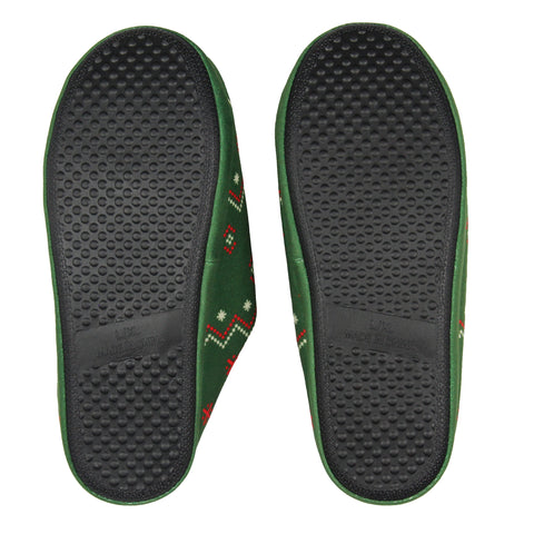 The Buddy The Elf house slipper features a fun, ugly Christmas sweater pattern, and the slippers bring a touch of holiday cheer with a vibrant design that includes a Buddy the Elf character graphic. Inside the slipper, your feet have a luxurious experience with a soft and comfy fuzzy fabric lining. This plush material ensures your feet stay warm and cozy during the colder holiday season, providing a great sanctuary from the winter chill. The interior flooring of the slipper is crafted with memory foam, which molds comfortably to your feet, offering personalized support and unparalleled comfort with every step. The bottom of the Buddy The Elf slippers features a durable rubber sole designed with no-slip nubs. These nubs provide excellent traction, ensuring you remain steady and safe on various surfaces.