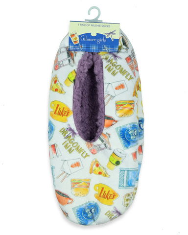 Step into some serious cozy vibes with these Gilmore Girls Mushies slipper socks. Covered in an all-over design of pizza slices, takeout boxes, Luke’s Diner coffee mugs, and the Dragonfly Inn, they let you show off your fandom while keeping your feet ridiculously soft and warm. Inside, the plush fleece lining feels like a gentle hug with every step—ideal for lounging around or just relaxing after a long day.
