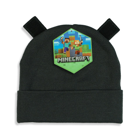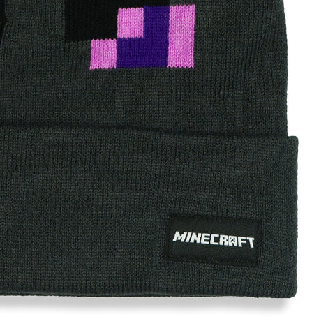 This adult Minecraft beanie features a detailed Ender Dragon face design with raised 3D ears that enhance its character-inspired look. The cuff includes a small Minecraft patch, clearly connecting the accessory to the popular game. Made from 100% polyester, the knit offers a soft, flexible feel for genuine comfort. The Ender Dragon is one of the most recognizable creatures in Minecraft, and this beanie captures its distinctive appearance with bold facial features and dimensional details. The design reflects the creature players encounter during the game's adventures. With its comfortable fit and unmistakable theme, this accessory gives fans a practical, character-inspired item to wear daily.