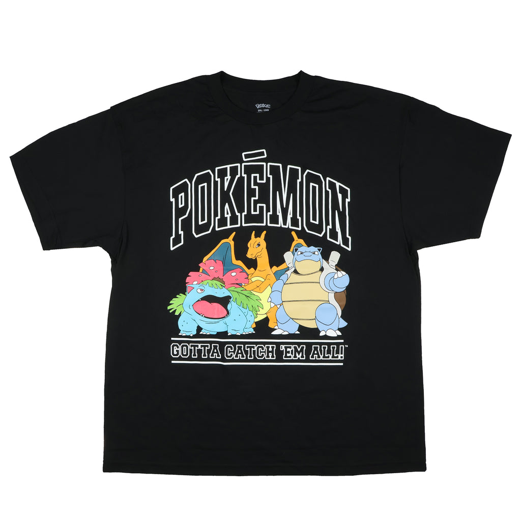 Bring the excitement of Pokémon to your wardrobe with this vibrant men’s graphic tee featuring Charizard, Ivysaur, and Blastoise. The eye-catching design, complete with the iconic “Gotta Catch ‘Em All” slogan, makes this shirt a must-have for fans of every generation. With its bold print and comfortable fit, it’s perfect for casual wear, conventions, or gaming nights.