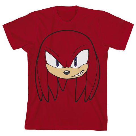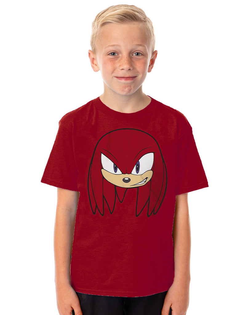 This Knuckles t-shirt is an easy choice for kids who love Sonic the Hedgehog and are drawn to bold character designs. The front features Knuckles' face printed large against a red background, making it instantly recognizable to young fans. Made from 100% cotton, this short-sleeve tee feels soft and breathable, helping kids stay comfortable whether they're relaxing at home or moving through a busy day.