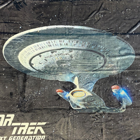 Wrap yourself in Star Trek: The Next Generation with this USS Enterprise fleece throw. Measuring 45 by 60 inches, it showcases the starship soaring through the depths of space, framed by a black border for a bold, finished look. Crafted from 100% polyester, the fabric offers a lightweight yet warm soft texture, making it suitable for year-round comfort. Star Trek: The Next Generation follows the crew of the USS Enterprise-D as they explore the galaxy, encounter alien civilizations, and navigate moral dilemmas in deep space. This throw captures the spirit of exploration and futuristic design the series is known for, making it a functional piece of fandom that's as practical as it is visually striking.