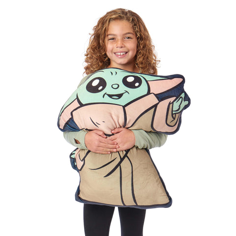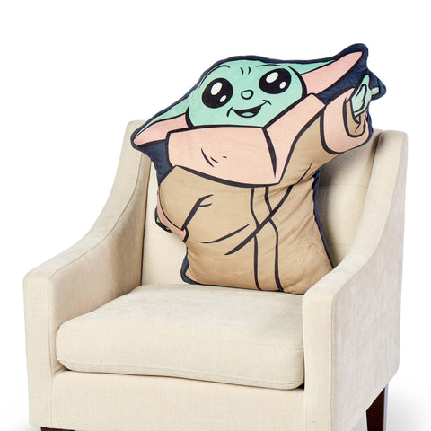 This Star Wars cloud pillow captures Grogu from The Mandalorian in a playful pose, reaching upward with a sparkle in his eyes. The pillow is shaped like Grogu himself, offering both comfort and visual appeal. Made from a soft 94% polyester and 6% spandex blend, it delivers a smooth, plush texture that feels comfortable against the skin. Measuring 22 by 21 inches, this Grogu-shaped cushion is sized for relaxing on the couch, bed, or chair. The Mandalorian series has become a standout part of the Star Wars universe, introducing Grogu as a character loved for his charm and curiosity. This pillow brings that same warmth into any space, combining comfort with a fun design that appeals to fans and collectors alike.