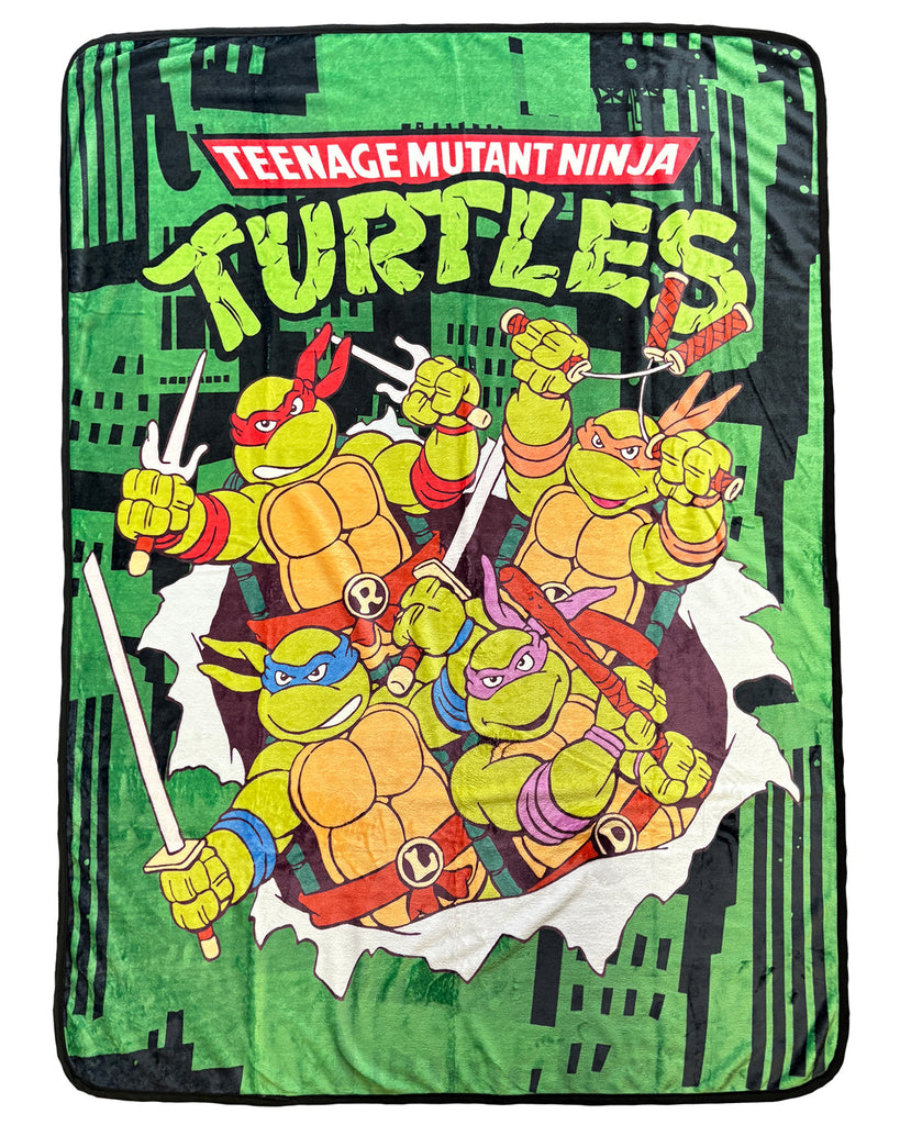This Teenage Mutant Ninja Turtles fleece throw combines softness and durability with a eye-catching design featuring Donatello, Michelangelo, Raphael, and Leonardo. Sized at 46 by 60 inches, this lightweight blanket offers plenty of coverage, perfect for relaxing at home or adding an extra layer of warmth when on the go. The 100% polyester fabric provides a smooth, silky feel that resists wear and is easy to care for with machine wash and tumble dry. Designed for TMNT fans, this throw adds a fun yet practical touch to any room. Its versatility makes it suitable for lounging, layering, or traveling, blending comfort with vibrant character artwork that stands out. Whether for personal use or as a gift for a fan, this durable throw is built to provide long-lasting coziness and style.