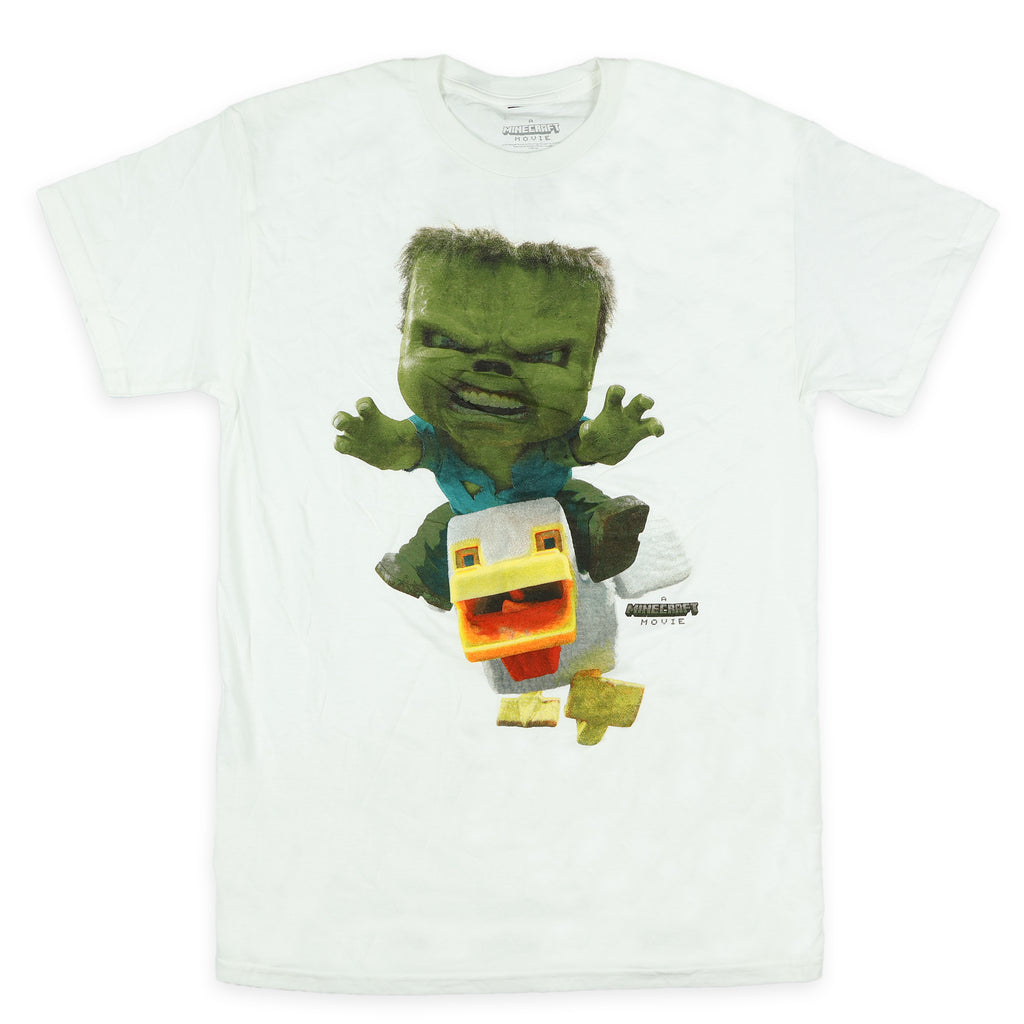 If you’ve ever spotted a Chicken Jockey in Minecraft, you know how rare it is — and now you can wear that moment with pride. This men’s tee shows a baby zombie riding a chicken just like in the game, turning one of Minecraft's funniest and rarest mobs into a bold front graphic. The 100% cotton fabric keeps it soft and breathable, so it’s as comfortable as cool.