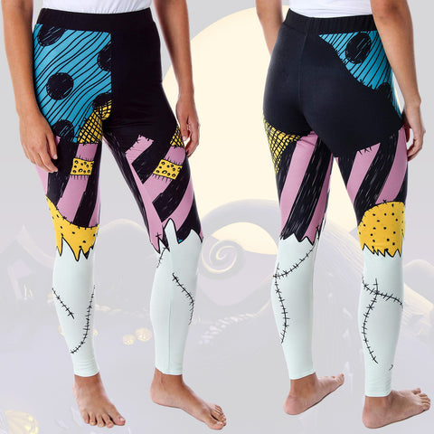 The Nightmare Before Christmas is Tim Burton's masterpiece stop-motion-animated fantasy film. It is the story of Jack Skellington, a being from Halloween Town. Sally is in love with Jack Skellington but is unsuccessful in showing her affections to Jack. However, by the end of the movie, she manages to let him know how much she loves him and he reveals that he loves her in return! They share a passionate kiss on top of the Spiral Hill Moon scene!. These Sally costume leggings features a super smooth feel and makes a perfect item to wear to cosplay events, conventions, costume parties, or even everyday wear! This Nightmare Before Christmas Sally legging is made of a stretchy and comfortable 95% polyester / 5% spandex fabric blend.