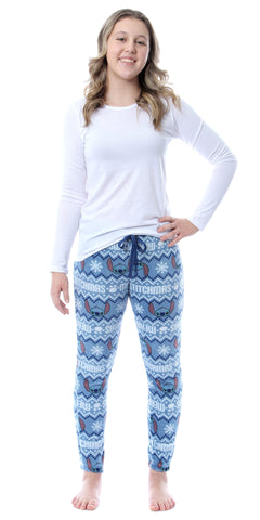 These are Lilo & Stitch women's Pajama Pants. Lilo and Stitch is a wonderful, heartwarming film from Disney. The alien Stitch or experiment 626 becomes the mischievous friend and pretend pet dog of a girl named Lilo. He learns about loyalty and ohana, (the Hawaiian term for family.) These Blue plush fleece sleep pants feature an adorable all-over "Merry Stitchmas" Design. Each lounge pant is made of ultra-soft 100% polyester fabric that will have you wanting to wear them and snuggle up to a good movie or book every day! They feature an elastic drawstring waistband. make a great gift too. These are listed in juniors sizing and make great pajama pants for teen girls.
