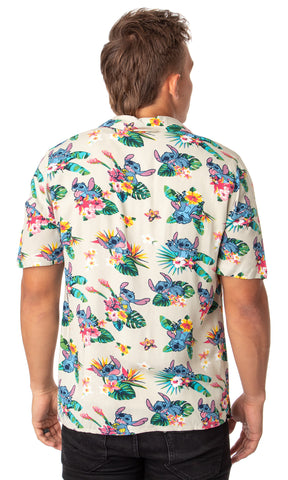 Disney Lilo & Stitch Men's Stitch Tropical Hawaiian Button Up Shirt Adult