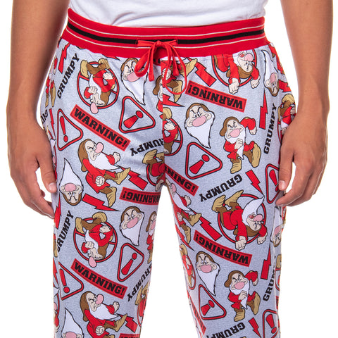 Get ready to lounge comfortably with these Snow White and the Seven Dwarfs Grumpy pajama pants! Designed with bold warning signs, lightning bolts, and exclamation points, they capture Grumpy's fiery personality while keeping you cozy. The jogger-style fit, complete with elastic ankle cuffs and a drawstring waistband, offers a relaxed feel without being too baggy. These lounge pants are built for comfort, whether you're kicking back at home or winding down after a long day.