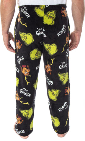 These are GREAT Dr. Seuss Grinch Pajama Pants. Dr. Seuss wrote GRINCH Who Stole Christmas, which is an all-time great holiday Christmas story that men, women, boys, and girls all know and love! These Dr. Seuss Grinch Fleece Plush Pajama Pants features an allover design of GRINCH with a Santa hat on and a sneaky look on his face. It is super soft fleece fabric with a Minky touch feel. Made of 100% polyester.